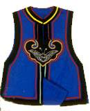 图案内容 挑绣图案的内容多为吉祥如意,憧憬未来,如“团花似锦”、“鱼水和谐”、“凤穿牡丹”,等等。这些装饰性很强的挑绣艺术品主要用在服装穿戴上,一是美观,二是耐磨,是典型的实用美术。